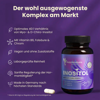 Myo-Inositol Kapseln - 40:1 mit D-Chiro-Inositol, Folsäure, B6 & Chrom
